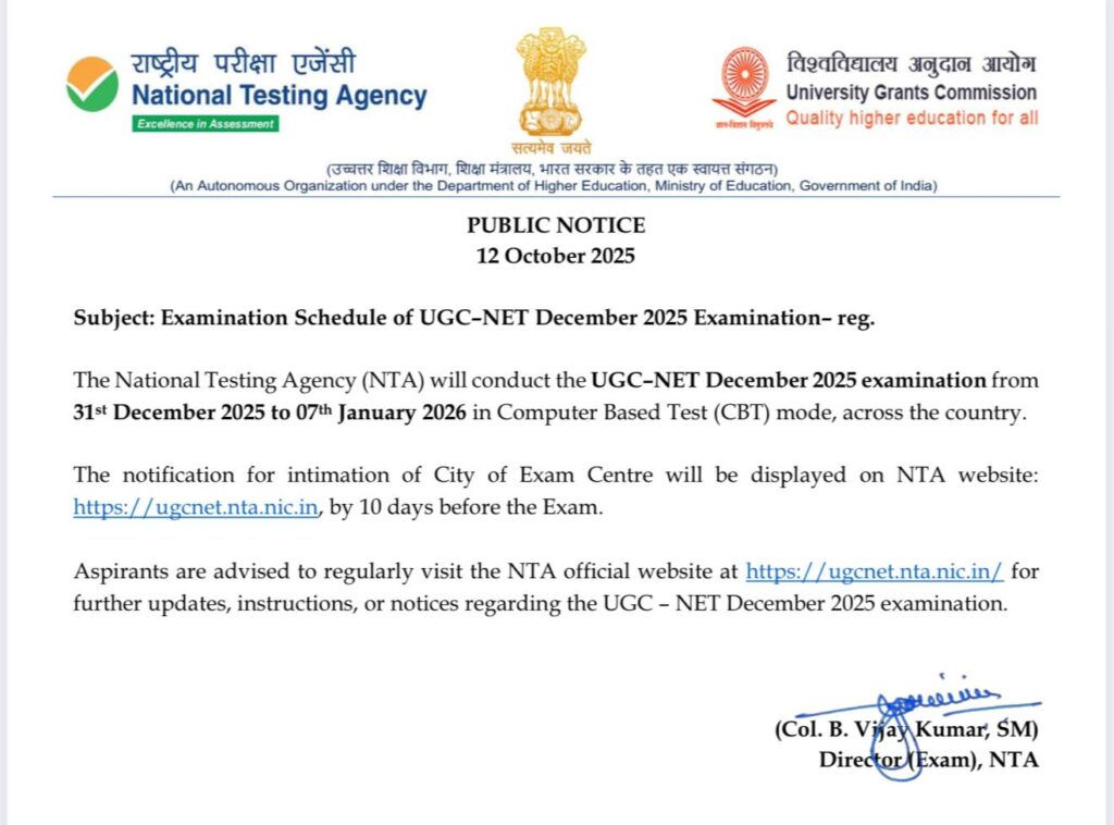 ЁЯЯб UGC NET (December)-2025 рдХреА рдкрд░реАрдХреНрд╖рд╛ рддрд┐рдерд┐рдпрд╛рдВ рд╕реЗ рд╕рдВрдмрдВрдзрд┐рдд рдЕрдзрд┐рд╕реВрдЪрдирд╛ рдЬрд╛рд░реАтЬЕ